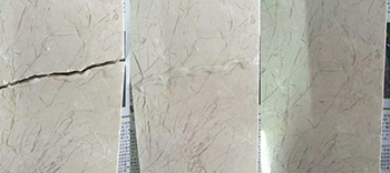這類修補(bǔ)法是針對(duì)孔洞比較小的,或者微裂隙的修補(bǔ),難度也是最高的一類。這一類孔洞或者裂隙都在1-3毫米,云石膠滲透性不是很好,給修復(fù)造成很多麻煩。這種孔洞同樣也會(huì)給拋光造成很大的麻煩。