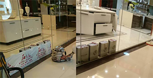 2、再用羊毛片配Dr.stone瓷磚預(yù)拋粉(按照1:5兌水)進行均勻拋磨;